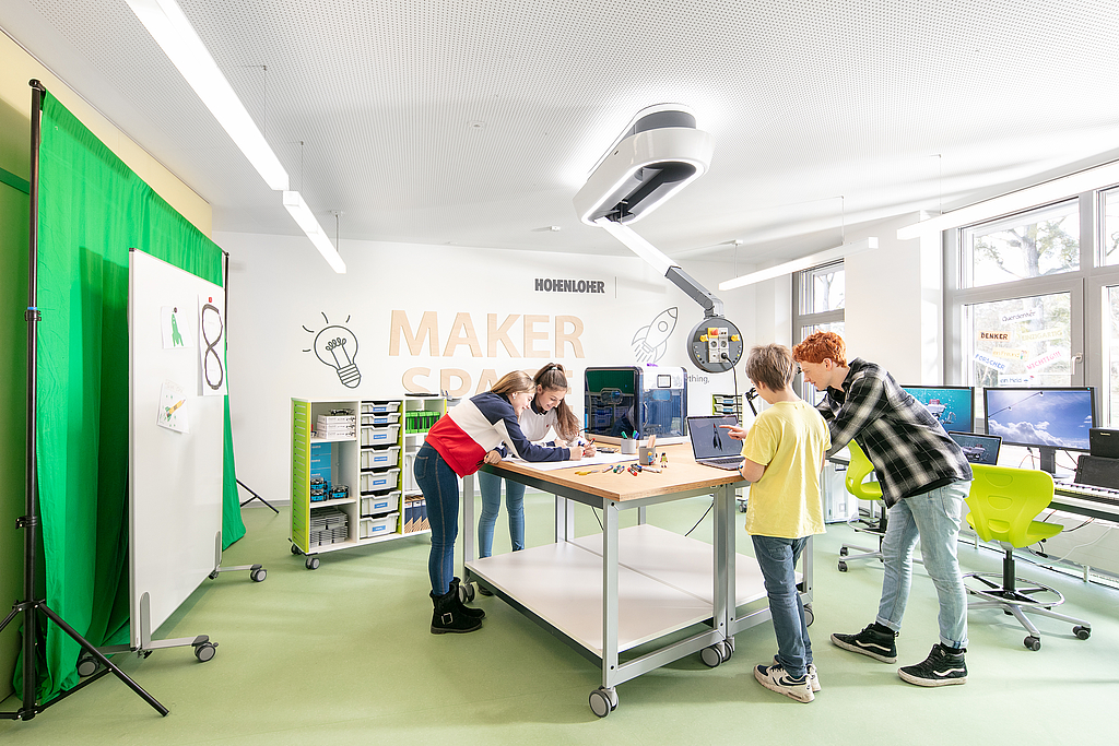 Der Labor- und Fachraumspezialist Hohenloher denkt bereits seit Jahren in Raumkonzepten und nicht in Schulmöbel-Einheiten. Konzepte wie Makerspace, MINT-Space oder offene Lernlandschaften prägen das Portfolio des Unternehmens ebenso wie modernste Deckenversorgungssysteme für naturwissenschaftlich-technische Fachräume. Die Auszeichnung der High Tech-Innovation „Fly One®“, eines multimedialen Deckensystems, mit dem „GERMAN INNOVATION AWARD 2018“ bekräftigt die Stellung von Hohenloher als Innovationsführer im deutschen Markt.