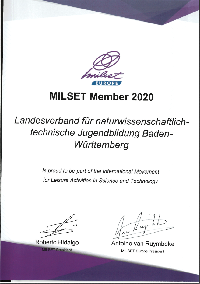 Der natec Landesverband wurde im Rahmen der Expo Science Europe in Gdynia, Polen am 18.08.2018 von den Mitgliedern offiziell als neues Mitglied bei MILSET Europe bestätigt.